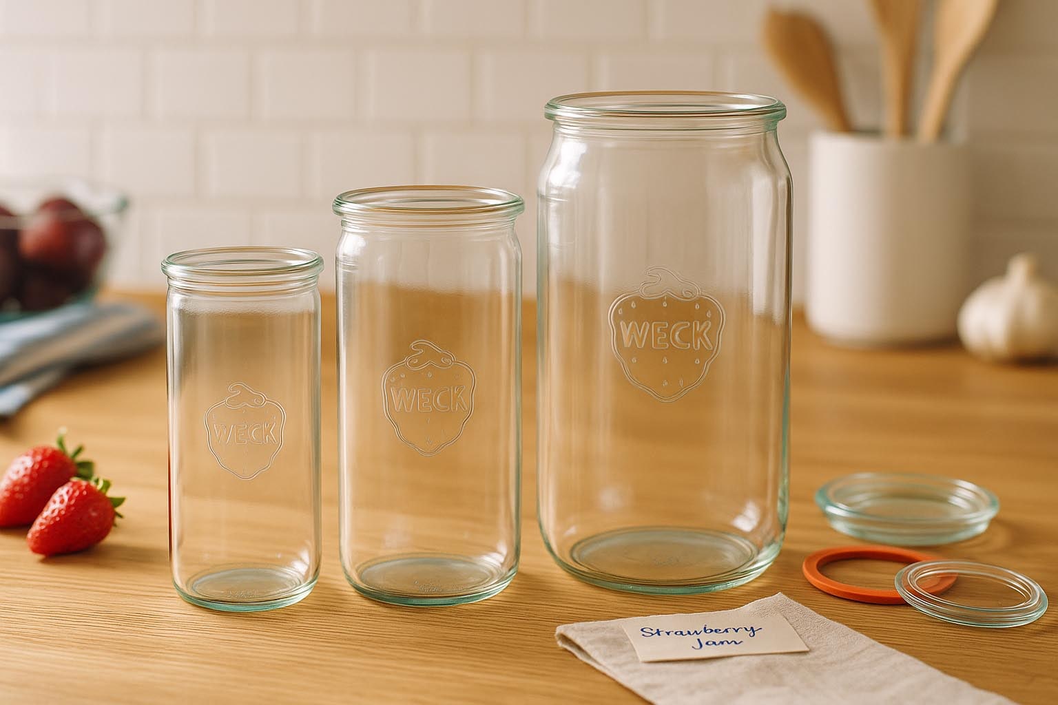 Die Rundrand-Mündungen von WECK sind ein wesentliches Merkmal der traditionellen Einkochgläser. Sie ermöglichen ein einfaches und zuverlässiges Verschliessen mithilfe eines Glasdeckels, eines Gummirings und der charakteristischen Einkochklammern. Die gleichmässige, abgerundete Form der Mündung sorgt für eine optimale Abdichtung beim Einkochen und eine einfache Reinigung. In unserem Sortiment erhalten Sie die passenden Deckel und Gummiringe von WECK für verschiedene Gläser und Anwendungen.