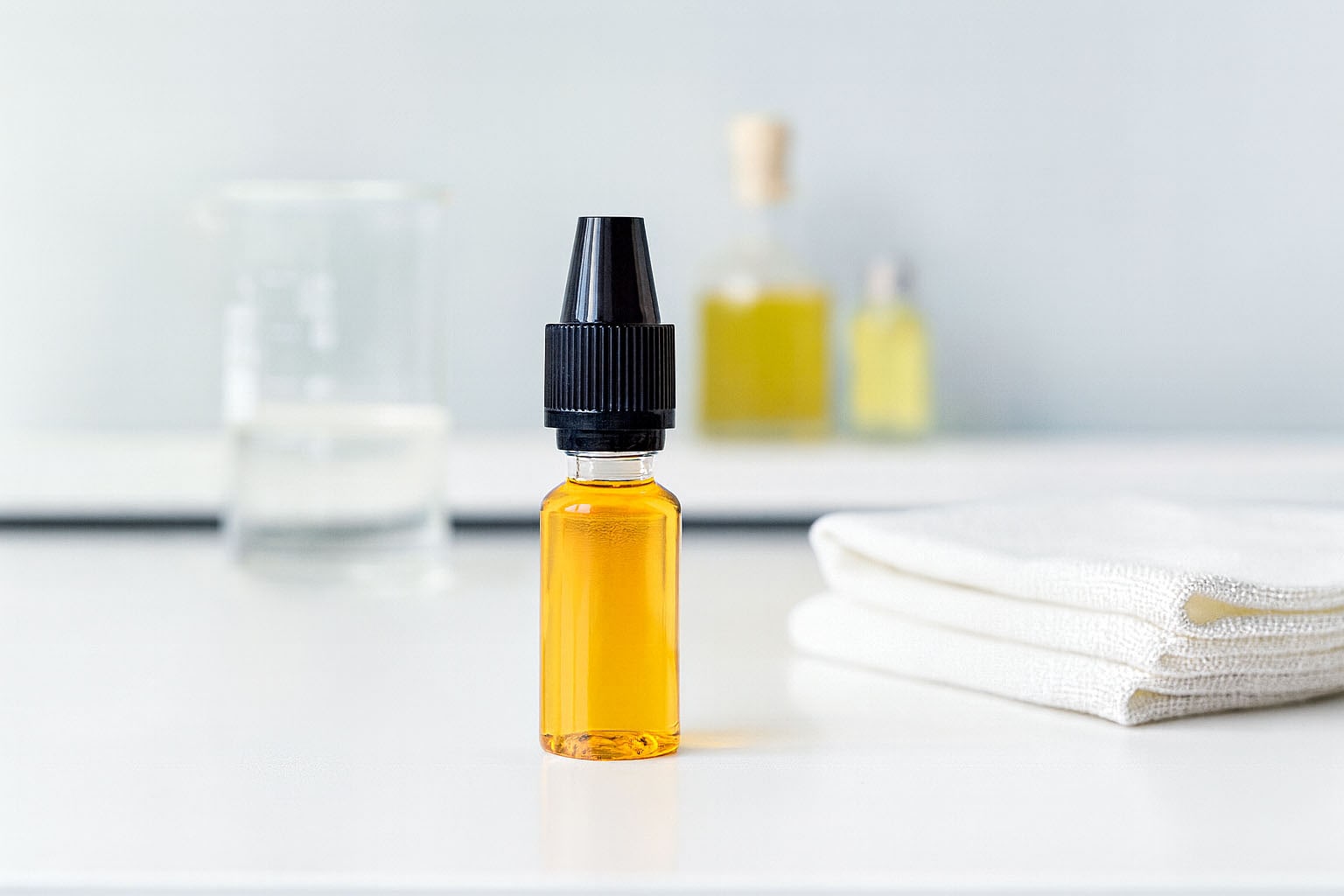 Die transparenten 10-ml-PET-Flaschen "E-Liquid" bieten eine sichere und praktische Lösung für die Aufbewahrung und Dosierung von Flüssigkeiten. Sie sind ideal für E-Liquids, flüssige Medizin- und Kosmetikprodukte und überzeugen durch ihre hohe Funktionalität. In Kombination mit einer abnehmbaren Tropfspitze ermöglichen sie eine präzise Dosierung, während der Deckel mit Qualitäts- und Kindersicherung zusätzlichen Schutz bietet. Beim ersten Verschliessen rastet die Sicherung ein. Wird der Deckel anschliessend geöffnet, löst sich der Sicherungsring als sichtbares Zeichen für die Erstöffnung. Leicht, stabil und anwenderfreundlich ist die PET-Flasche "E-Liquid" die ideale Wahl für eine sichere und zuverlässige Verpackung.