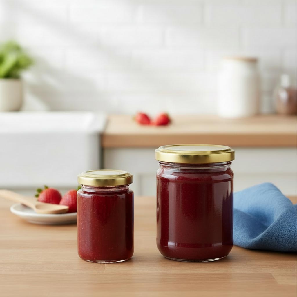 Die Produktserie „Rundglas“ von Flaschenland umfasst hochwertige 110 ml Rundgläser mit einer Twist-Off-Mündung (TO 48), die sich durch ihre Vielseitigkeit und Robustheit auszeichnen. Diese Glasbehälter sind ideal für die sichere Aufbewahrung und Konservierung von Lebensmitteln wie Marmelade, Pesto oder anderen Einmachprodukten. Die Rundgläser bestehen aus hitze- und kältebeständigem Glas, das sowohl mikrowellen- als auch backofenfest ist. Dadurch sind sie besonders flexibel einsetzbar und können problemlos in der Geschirrspülmaschine gereinigt werden. Mit einem Fassungsvermögen von 110 ml und der praktischen Twist-Off-Mündung bieten sie eine sichere und luftdichte Verschlussmöglichkeit, die das Aroma und die Frische der Inhalte bewahrt.