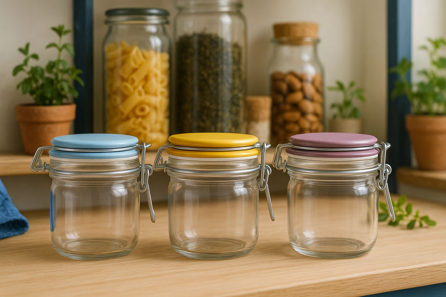 Die Serie „Fido“ vereint klassisches Design mit funktionaler Vielseitigkeit. Hergestellt vom renommierten italienischen Hersteller Bormioli Rocco, überzeugt dieses Drahtbügelglas durch seine hochwertige Verarbeitung und langlebige Qualität. Jedes Glas wird mit einem stabilen Drahtbügel, einem Glasdeckel und einem Gummiring geliefert, was eine luftdichte Versiegelung garantiert. Zudem sind die Deckel in verschiedenen Farben erhältlich – Blau, Gelb, Grün, Rosa und Violett – und verleihen jedem Glas eine individuelle Note.