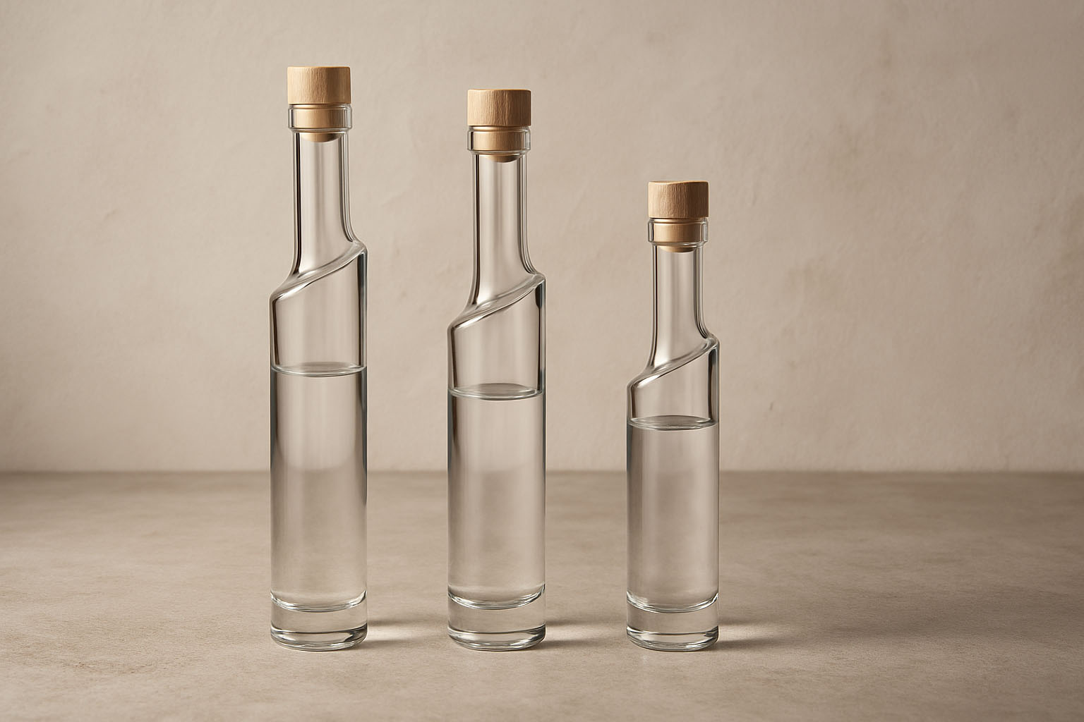 Die Serie „Feeling“ vereint kunstvolle Ästhetik mit funktionaler Perfektion und setzt neue Massstäbe in der Flaschenarchitektur. Ihre schlanke, elegante Form wird durch einen markanten, asymmetrischen Hals ergänzt, der ihr einen einzigartigen Charakter verleiht. Diese außergewöhnliche Gestaltung macht die Flasche zu einem echten Kunstobjekt und einer stilvollen Wahl für hochwertige Abfüllungen. Mit einem Fassungsvermögen von 200 bis 500 ml bietet „Feeling“ die ideale Grösse für edle Spezialitäten. Die Korkenmündung sorgt für eine klassische und sichere Verschlusslösung – passende Korken sind in unserem Sortiment erhältlich.