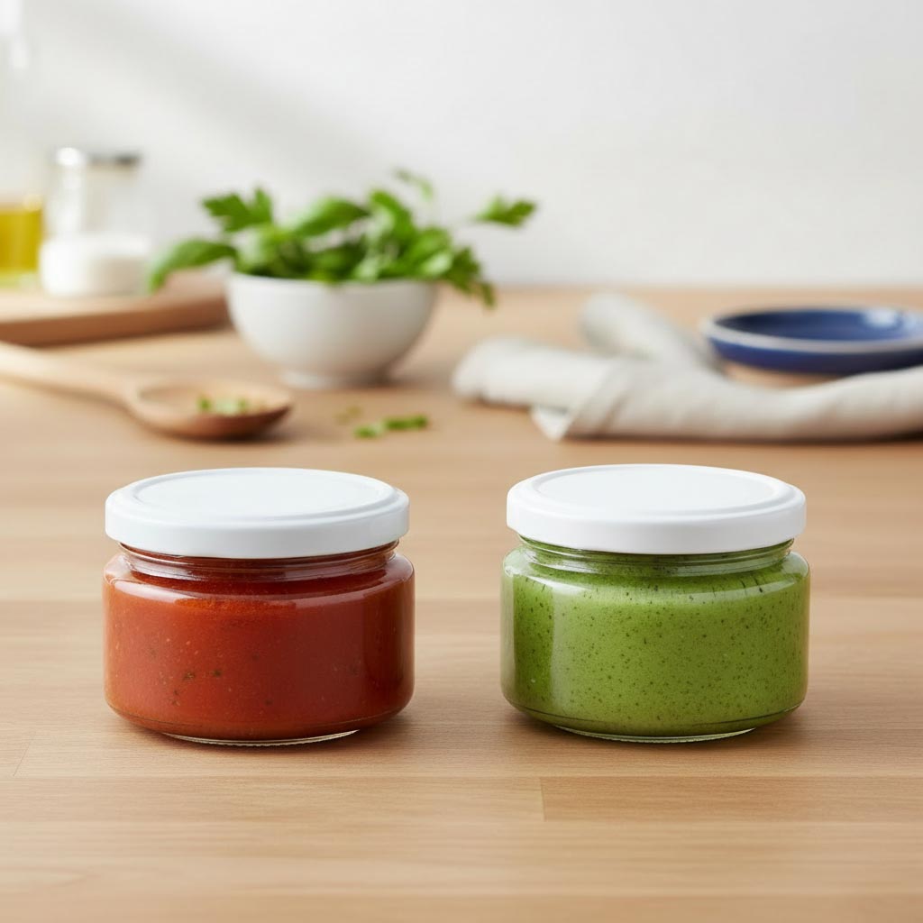 Die Produktserie „Rundglas“ von Flaschenland umfasst hochwertige 30 ml flache Rundgläser mit einer praktischen Twist-Off-Mündung (TO 43), die sich durch vielseitige Einsatzmöglichkeiten und robuste Materialeigenschaften auszeichnen. Diese Glasbehälter sind speziell für die sichere Aufbewahrung und Präsentation von Lebensmitteln wie Marmelade, Pesto oder anderen Einmachprodukten konzipiert. Die Rundgläser bestehen aus hitze- und kältebeständigem Glas, das sowohl mikrowellen- als auch backofenfest ist. Dadurch sind sie ideal für vielfältige Anwendungen – vom Erhitzen und Einfrieren bis hin zum Backen. Zudem sind die Gläser spülmaschinengeeignet, was eine einfache Reinigung und Wiederverwendung ermöglicht.