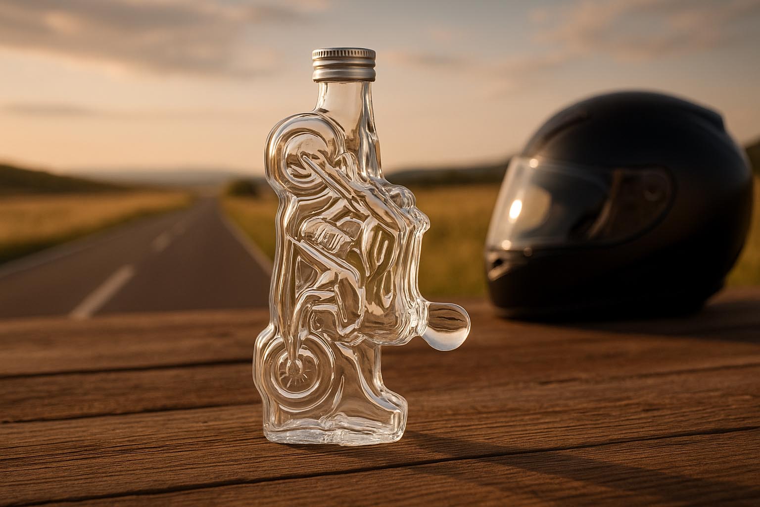Die Motivflasche „Motorrad“ ist ein aussergewöhnlicher Hingucker, der das Freiheitsgefühl und die Faszination des Motorradfahrens in eine stilvolle Glasflasche verwandelt. Ihre detailreiche Gestaltung macht sie zur perfekten Wahl für alle, die Geschwindigkeit, Abenteuer und Individualität lieben. Gefertigt aus hochwertigem Klarglas, bietet sie eine edle Verpackung für Spirituosen, Brände, Liköre und andere besondere Köstlichkeiten. Die praktische Mündung im PP-28-Format ermöglicht eine einfache Handhabung und sorgt für eine sichere Versiegelung. Ob als Geschenk für Motorrad-Enthusiasten oder als originelle Präsentationsflasche – die „Motorrad“-Flasche verbindet markantes Design mit funktionaler Qualität.