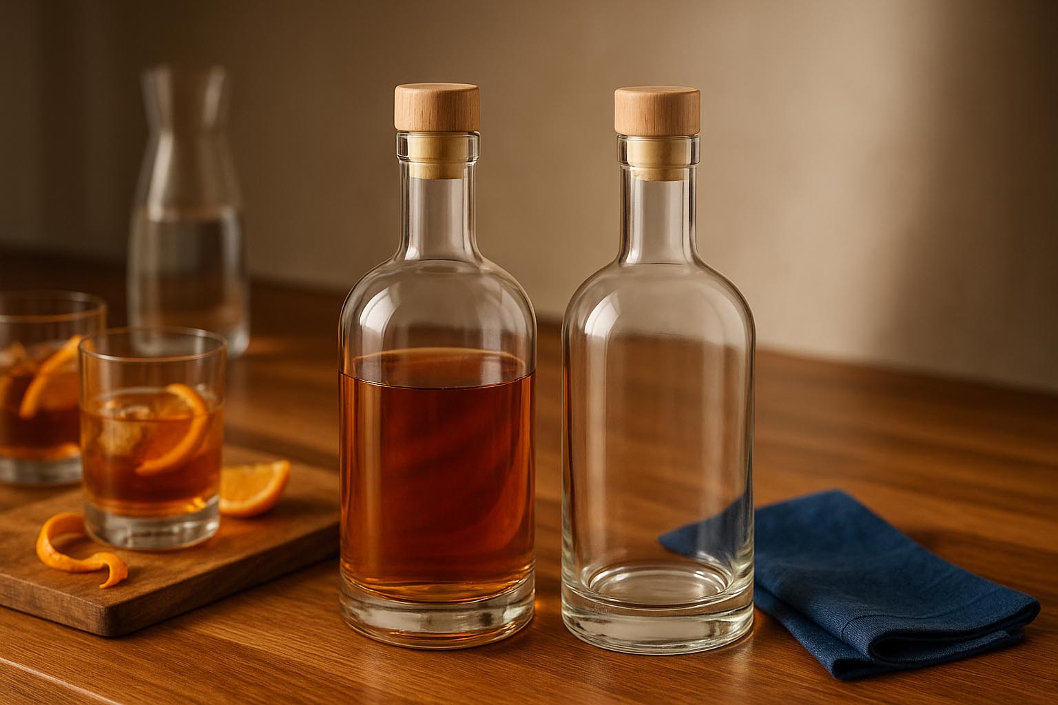 Die Designflasche Franco verbindet italienische Handwerkskunst mit zeitloser Eleganz und bietet eine stilvolle Lösung für hochwertige Spirituosen, Liköre, Sirupe und andere edle Füllgüter. Erhältlich in den Grössen 500 und 700 ml, überzeugt sie mit klaren Linien und einer harmonischen Form, die jede Abfüllung perfekt in Szene setzt. Die klassische Korkmündung ermöglicht eine sichere und stilvolle Versiegelung – passende Verschlüsse sind in unserem Sortiment erhältlich. Mit ihrer hochwertigen Verarbeitung und ihrem minimalistischen Design ist Franco die ideale Wahl für Marken, die Exklusivität und Eleganz in einer Flasche vereinen möchten.