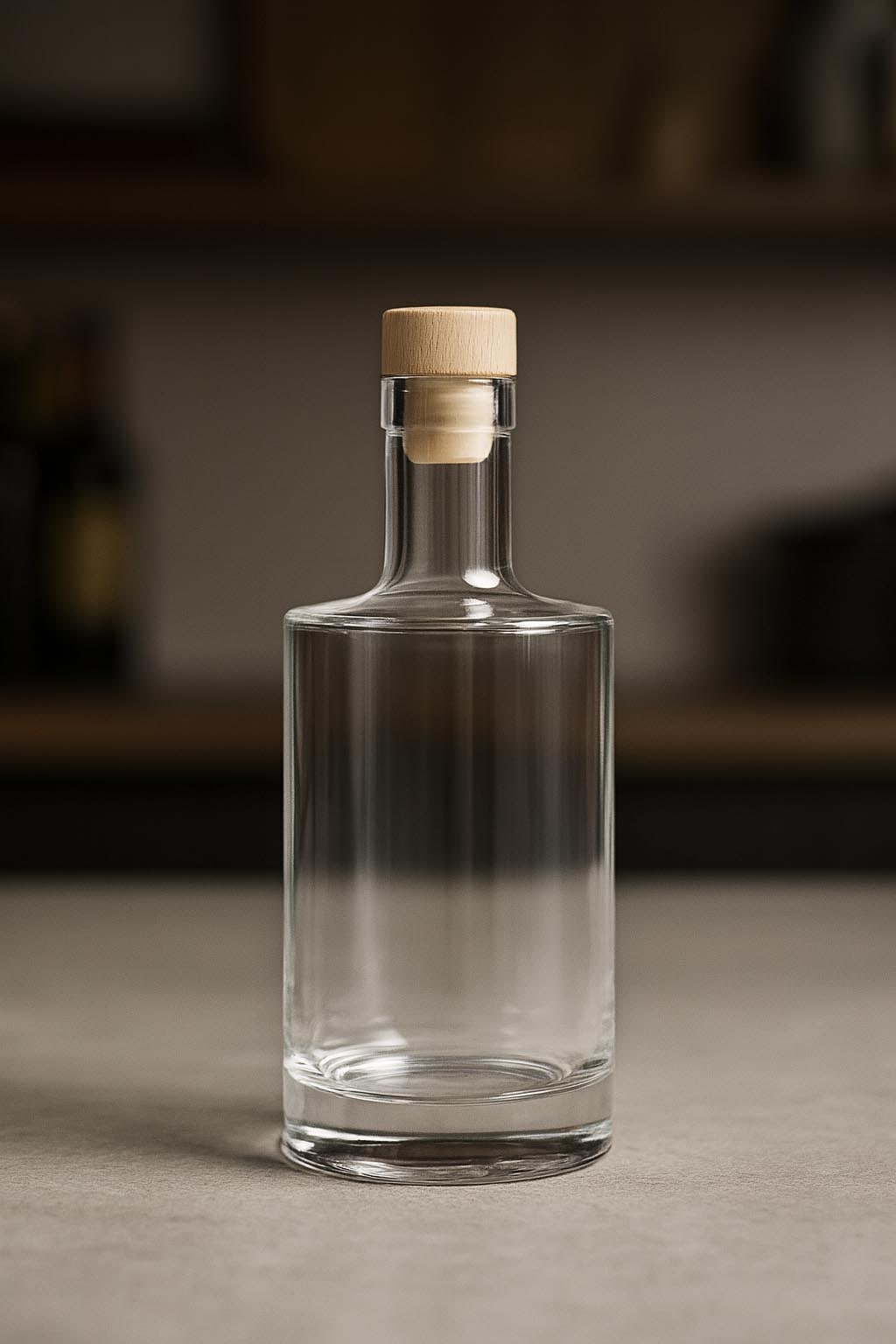 Die Serie "Homeland" steht für markante Eleganz und hochwertige Verarbeitung. Diese exklusive Zylinderflasche aus Klarglas überzeugt mit ihrem mehr als 2 cm starken Glasboden, der nicht nur für aussergewöhnliche Stabilität sorgt, sondern auch eine beeindruckende optische Tiefe verleiht. Die robuste und dennoch stilvolle Form macht "Homeland" zur perfekten Wahl für edle Spirituosen, charaktervolle Liköre und andere hochwertige Abfüllungen. Dank der flexiblen Mündungsoptionen – wahlweise mit Kork- oder GPI 28-Verschluss – passt sich die Flasche individuellen Anforderungen an. "Homeland" vereint zeitloses Design mit einem starken Auftritt und setzt jedes Produkt stilvoll in Szene.