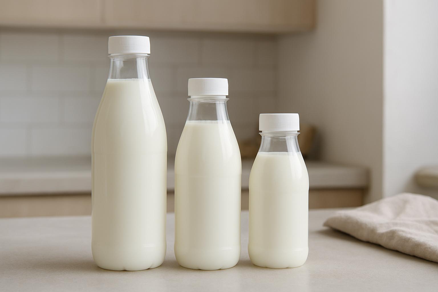 Die Serie „Milk and Juice“ bietet eine funktionale und vielseitige Verpackungslösung für frische Lebensmittel und Getränke. Diese hochwertigen PET-Weithalsflaschen überzeugen durch ihre weite Füllöffnung, die das Befüllen und Ausschenken besonders einfach macht. Erhältlich in Grössen von 150 bis 1000 ml, eignen sie sich hervorragend für die Abfüllung von Säften, Milchprodukten und anderen flüssigen Nahrungsmitteln. Das leichte und robuste PET-Material sorgt für eine hohe Bruchsicherheit und einfache Handhabung im Alltag. Passende Verschlüsse sind in unserem Sortiment erhältlich, sodass „Milk and Juice“ eine praktische, sichere und hygienische Lösung für verschiedenste Anwendungen bietet.